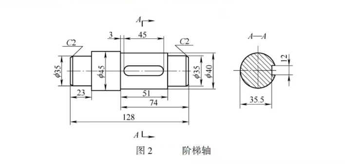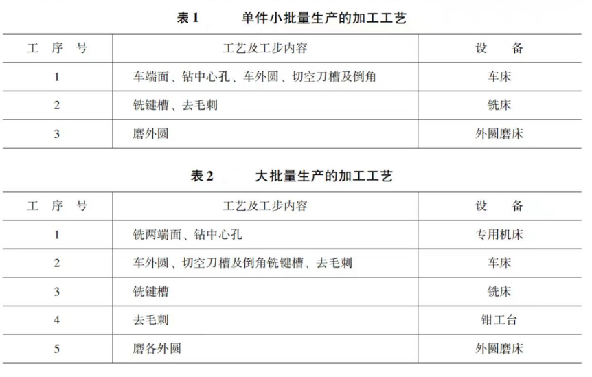 加工圖2所示的階梯軸,屬于單件小批量生產時,可采用表1方案進行加工;屬于大批量生產時,應采用表2方案進行加工。