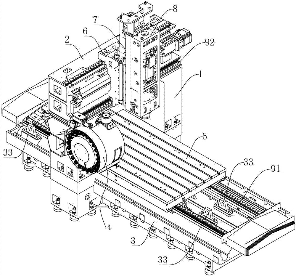 工件被牢固地夾持在工作臺上,工作臺可以沿Y軸(垂直于橫梁的方向)和Z軸(垂直于工作臺表面的方向)移動。這種多軸移動能力使得龍門加工中心能夠加工出復雜的三維形狀。